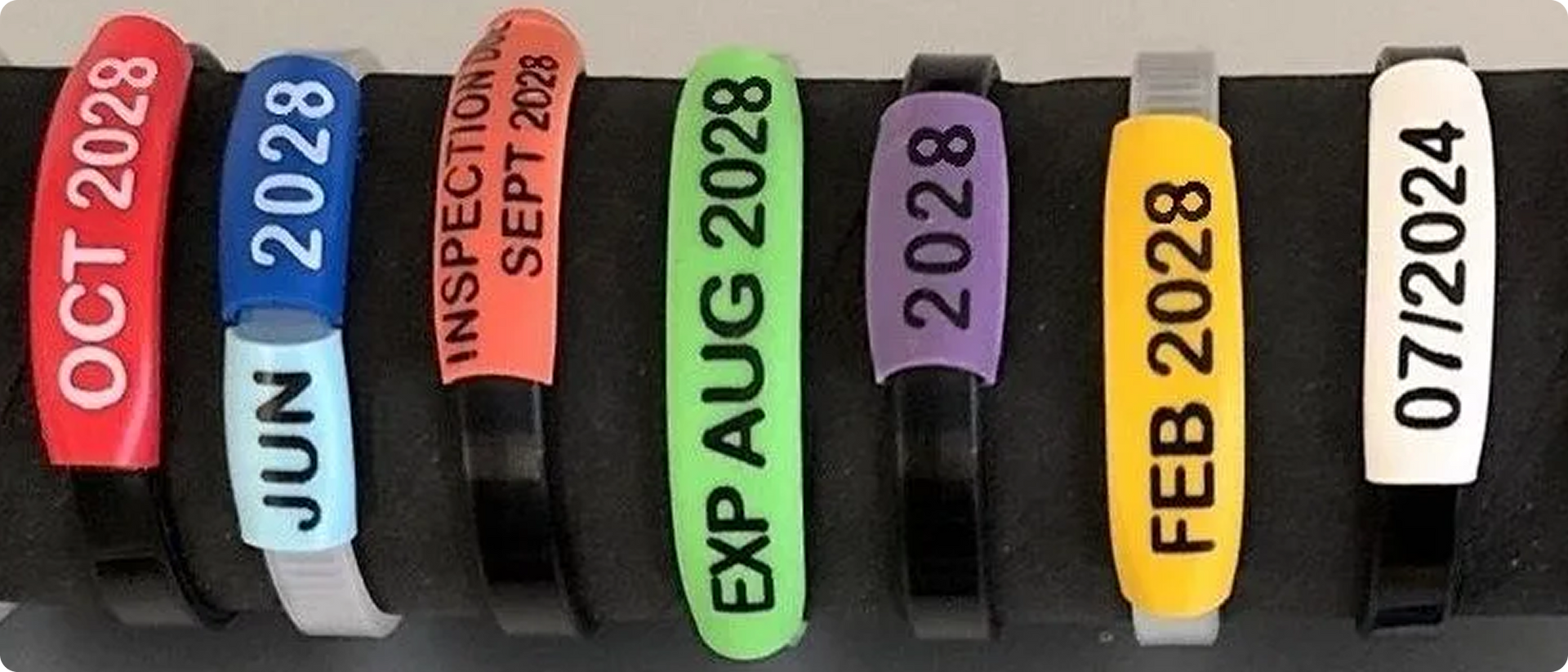 Zip-Tie Date Sleeves are manufactured from PVC tubing, designed to slide over standard zip ties which are then fastened quickly and easily around your item. Custom printed in the UK to order, so you can create your bespoke kit - mixing and matching colours and texts. Shipped without delay, often within 24 hours.