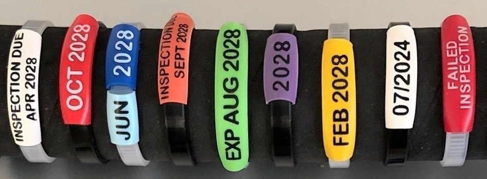 Larger Inspection Date Labels can be produced to your order using PVC carriers to hold the printed and colour coded sleeves, fastened to your item with 2 standard cable ties.