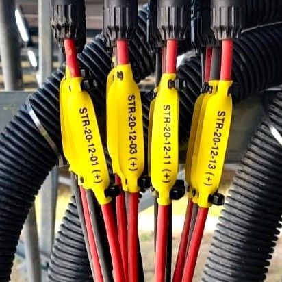 Tie-On Cable Tags and Traffolyte-Style Engraved Cable Labels ideal for Solar Farm installations. Printed in the UK quickly and at the most economical prices, to your order. Bespoke cable labelling for your inverters, cable trays, larger cables and bundles.